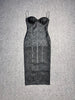 Strapless V-Neck Black Foil Bandage Dress