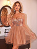 Vestido de fiesta elegante de corte A con cuello tubo, tirantes finos y costuras de lentejuelas
