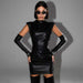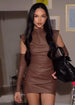 Vestido estilo hipster de piel sintética, sin mangas, cuello alto y mangas largas, plisado