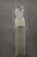Vestido corto de malla con tirantes y volantes en la cadera con borlas