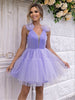 Vestido de fiesta camisero de malla con escote en V profundo y tirantes finos