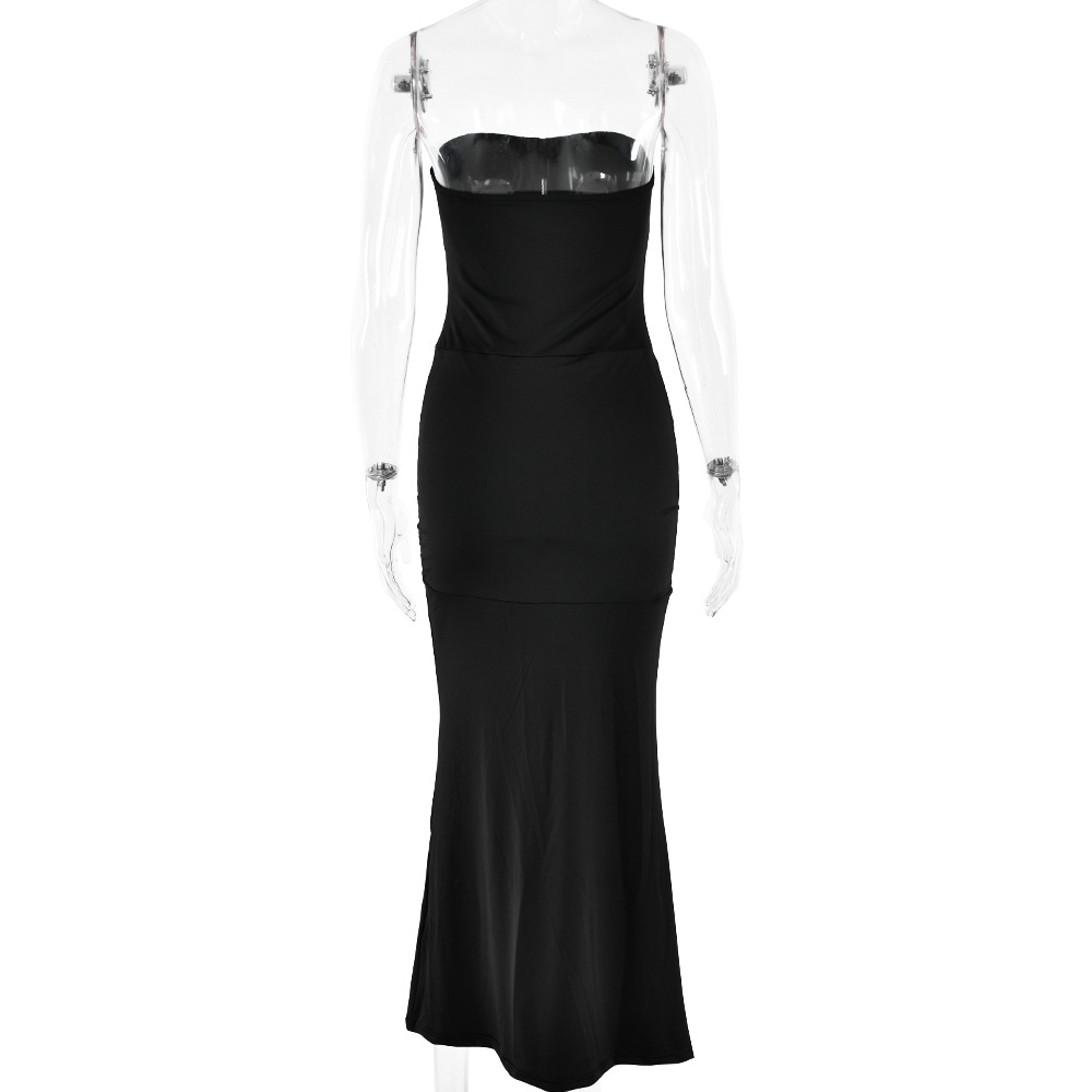 Vestido de noche plisado de color liso con espalda descubierta y top de tubo ajustado