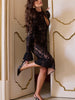 V-Neck Hollow Out Long Sleeve Black Lace Maxi Dress