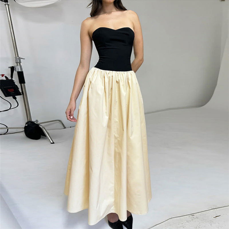 Vestido tubo ajustado con patchwork en contraste de colores y pliegues