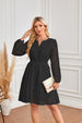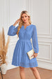 Vestido plisado de manga larga con escote en V, aberturas, bordado con ojales