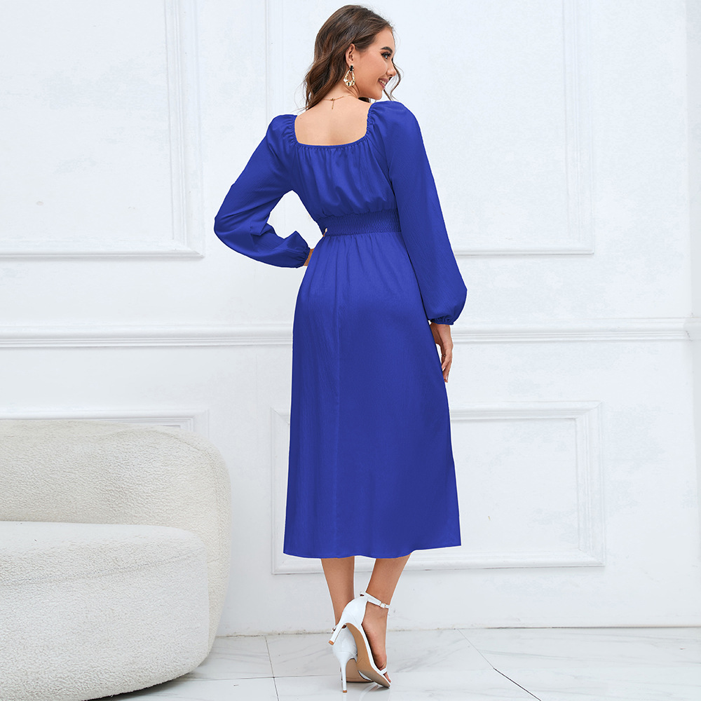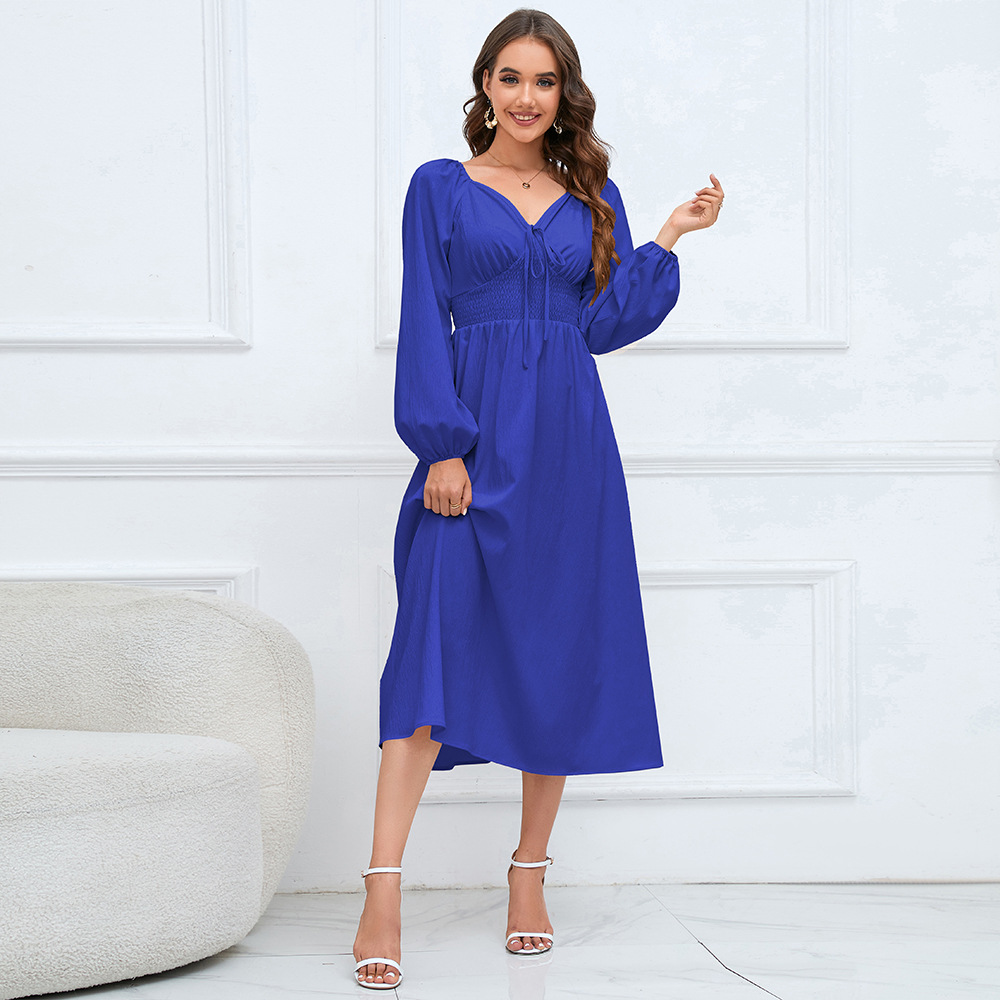 Vestido elegante de manga larga con cuello en V y corte entallado