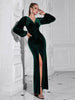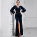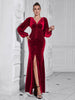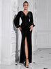 Vestido elegante de cena con escote en V y manga larga dividida