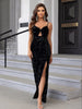 Vestido ligero con escote en V y tirantes, abertura alta con lentejuelas y aberturas