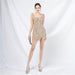 Vestido de noche corto de terciopelo hecho a mano con cuentas y lentejuelas de colores.