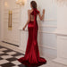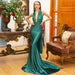 Vestido largo formal con tirantes y escote en V y espalda descubierta para fiestas y banquetes