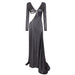 Vestido de seda plateado con abertura y espalda descubierta con diseño de escorpión de manga larga negro