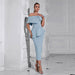 Vestido de fiesta ajustado con volantes y hombros descubiertos de color azul
