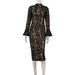 Use un vestido elegante de manga larga con encaje, aberturas y corte ajustado a la cadera.