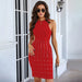 Vestido elegante de alta gama con remaches y vendaje de alta costura.