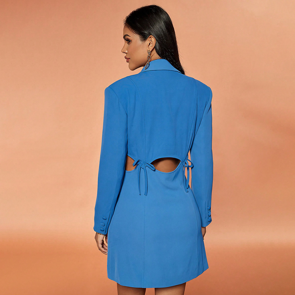 Vestido blazer con cuello en V, manga larga, aberturas y cuello fino