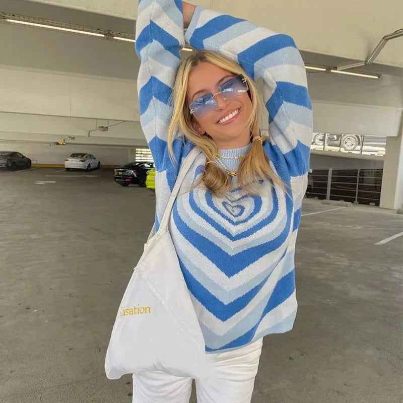 Este versátil suéter combina con una variedad de atuendos para crear looks únicos. Llévalo con jeans casuales para un estilo relajado y moderno, o con una falda plisada para un toque más femenino y retro. Con el Suéter Corazón Y2K, las posibilidades son infinitas y deja que tu creatividad brille.