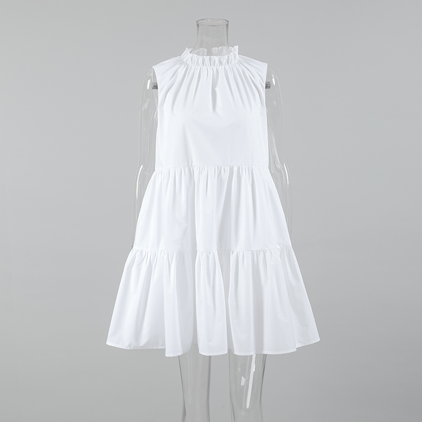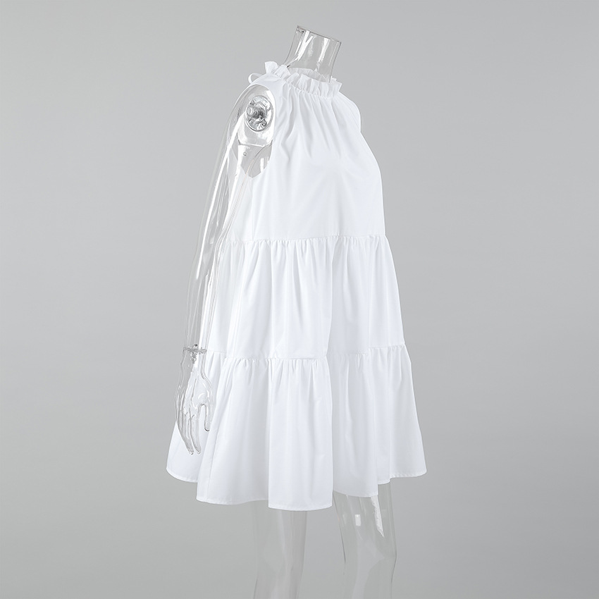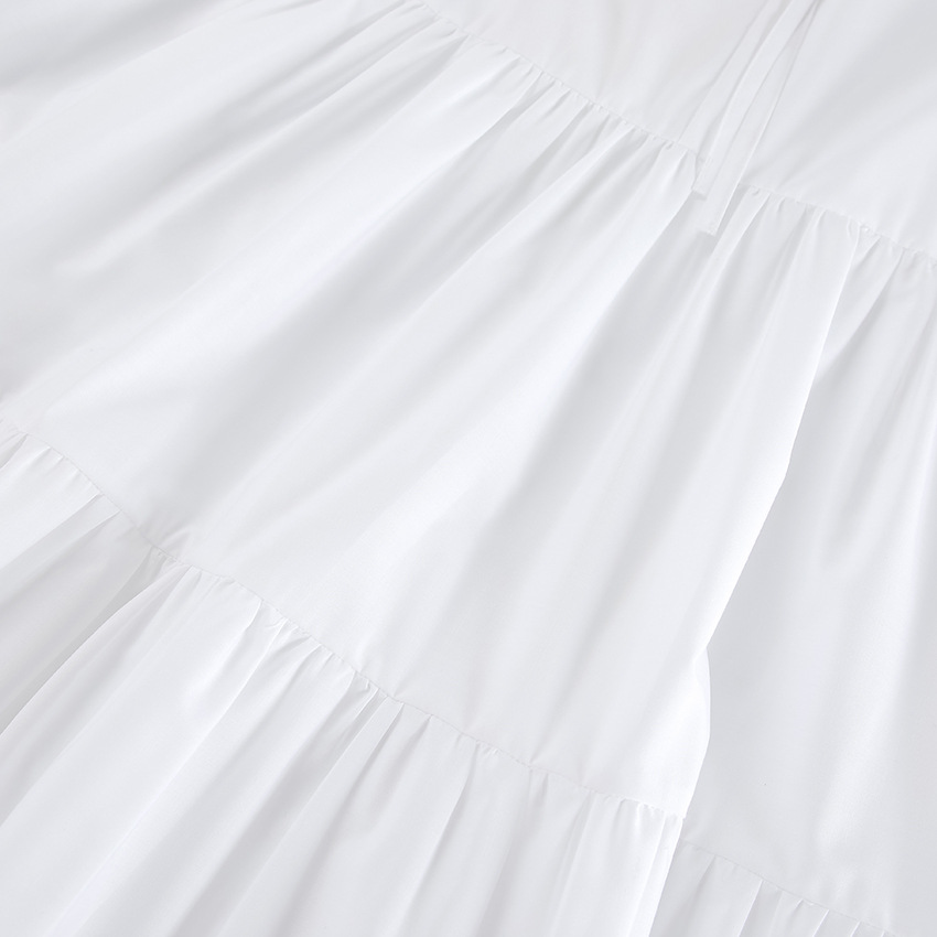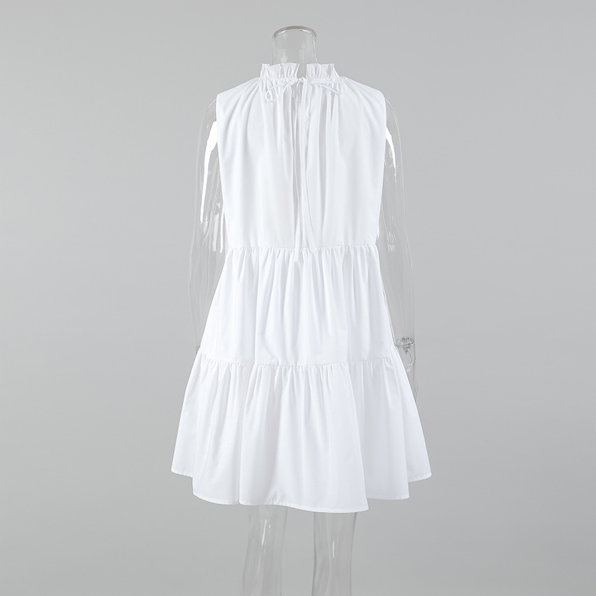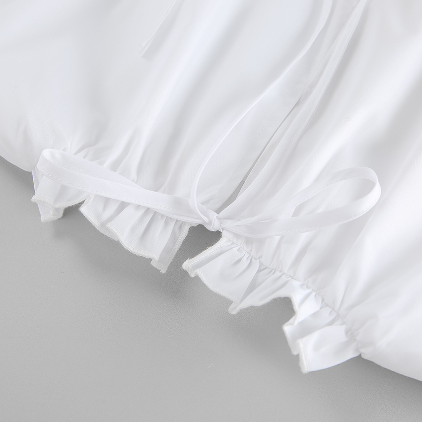All Match White Elegant Dress round Neck Bow Lace up Elegant Loose Short