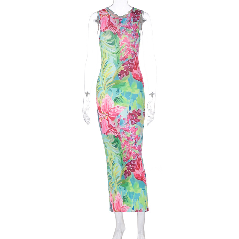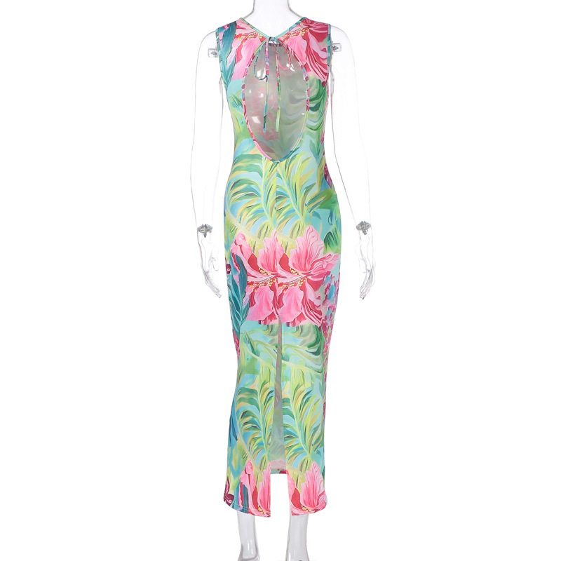 Arrival Back Hollow Out Cutout Printed Sleeveless