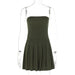 Bandeau One Shoulder Waist Trimming Solid Color Dress No Belt