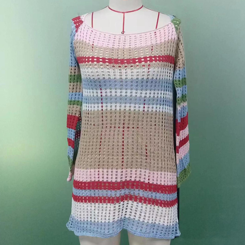 Hollow Out Cutout Long Sleeved Knitted Dress