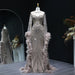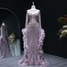 Beaded Mermaid Evening Dress with Feather Cape Sleeves