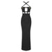 Black Cross Halterneck Pocket Dress Stretch Bandage One Piece Dress Suspender Dress