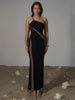 Black Mesh Patchwork One Shoulder Maxi Dress
