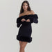 Black Plush Long Sleeve off Shoulder Dress  Fur Backless Hip