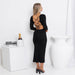 Black Square Collar Long-Sleeved Dress Backless Lace Split Maxi