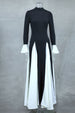 Black White Contrast Color Elegant Ruffle Long Sleeve Big Hem Dress