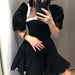 Black White Contrast Color Square Collar Puff Sleeve Backless Dress High Sense