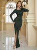 Bright Silk Tight Slit Hemline Long Sleeve Knitted Elastic Dress