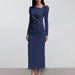 Casual Elegant Irregular Asymmetric Collar Puff Sleeve Tight Split Dress Khaki Maxi Dress