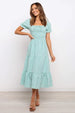 Check Square Neck Tie Ruffle Vacition A Line Dress