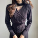 Chic Personality All Match Round Neck Hemp Pattern Front Back Wearable Design Sneaky Design Split Sweater