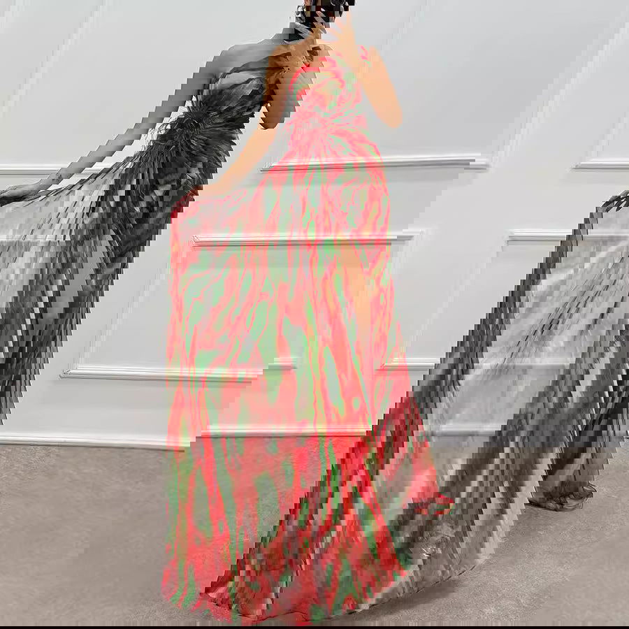 Chiffon Floral Print Slit Dress Casual Party Long Dress