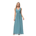 Chiffon Maxi Dress Double V Neck Sleeveless Swing Evening Dress Split Stretch Waistline Prom Gown