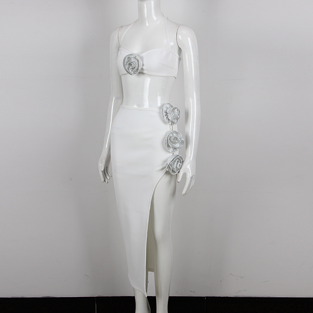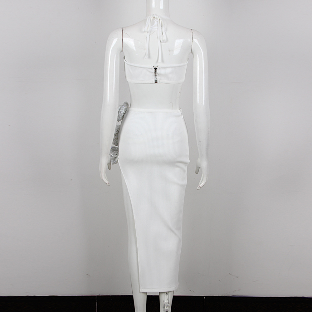 Element: Split.Tie.Rhinestone.Cutout.Backless.3D Decoration