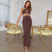 Clothes GracefulDress Halter Backless Hollow Out Cutout Split Patchwork Dress