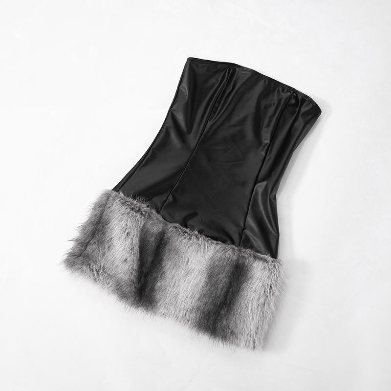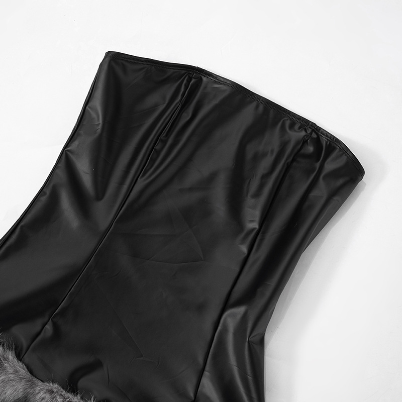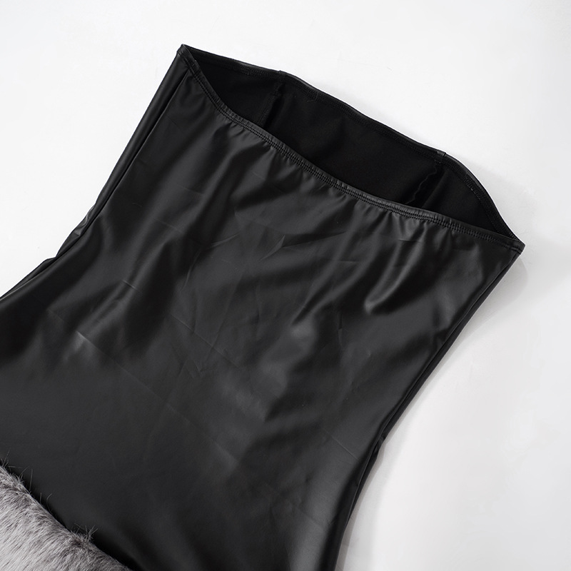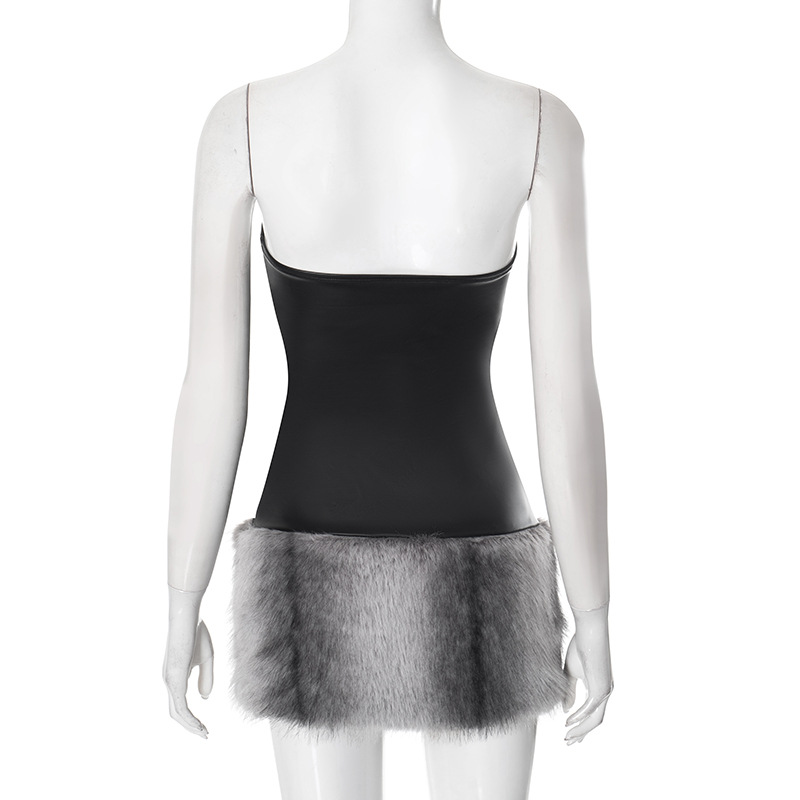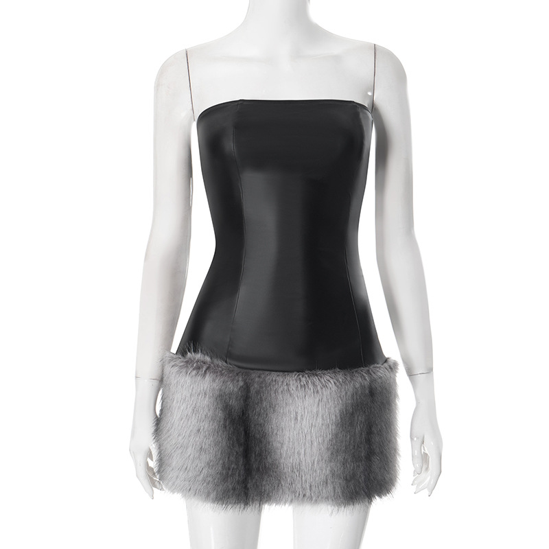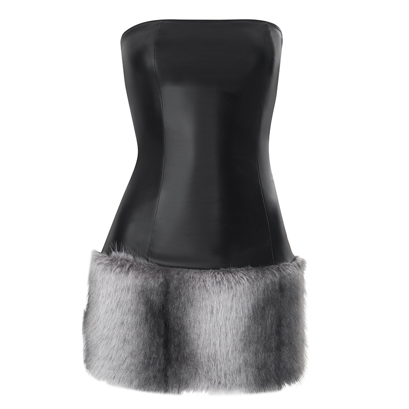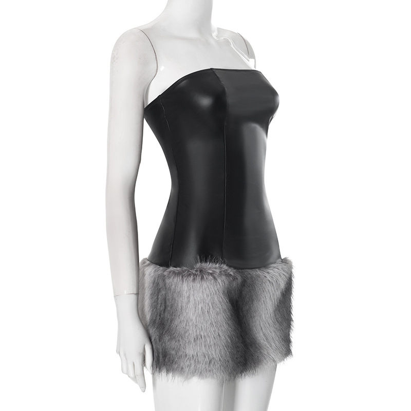 Collarless Leather Tube Top Plush Stitching Hip Short Dress