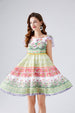Contrast Colorful Flower Print Chiffon Dress High Waist Back Rubber A- Line Short Dress