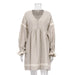 Cotton Linen French Dress Office V neck Lantern Sleeve Loose Dress