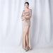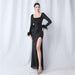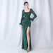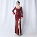 Craft Order Ostrich Feather Dinner Wedding Host Sequin Long Sleeve Evening Dress