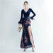 Craft Ostrich Feather Sequin Velvet Side Slit Long Sleeve Evening Dress