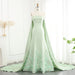 Crystal 3D flower Sage Green Satin Dress with Cape