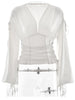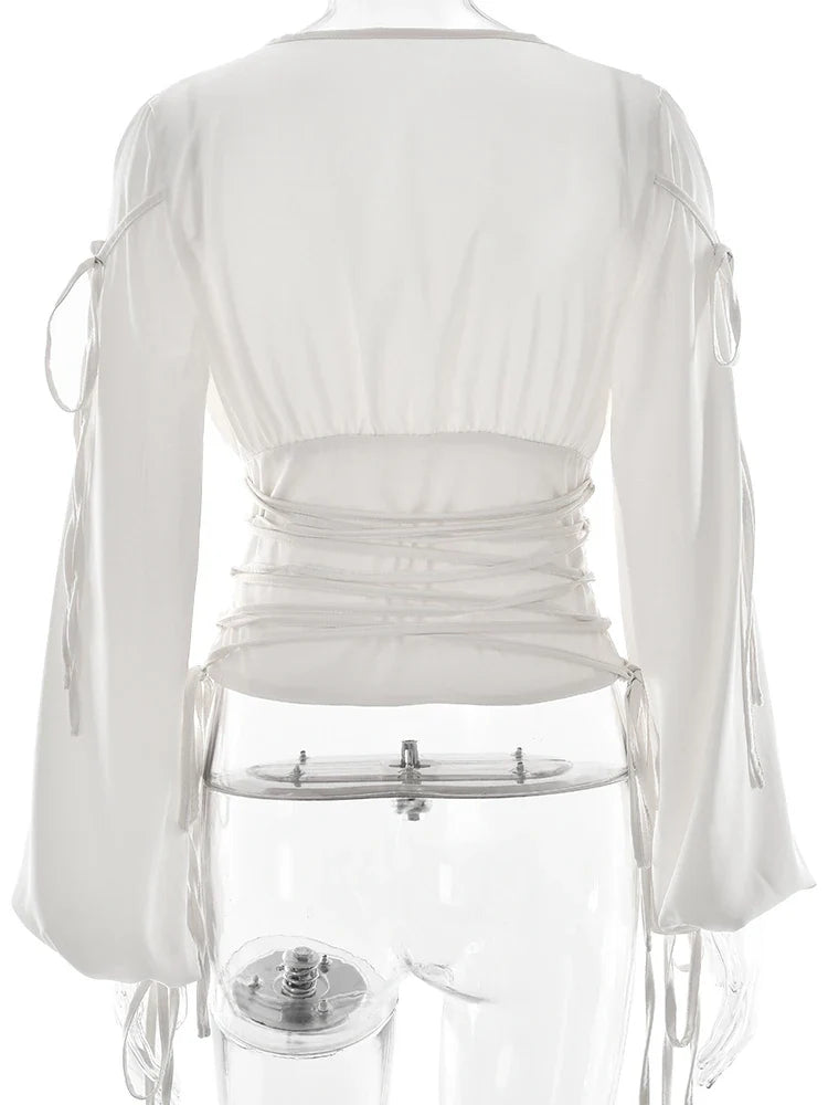 Deep V-Neck Satin Lace-Up Slim Shirt