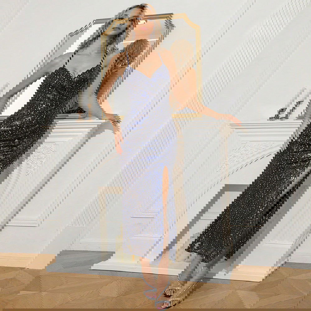 Deep V Plunge Ball High Slit Strap Dress Dress Dress