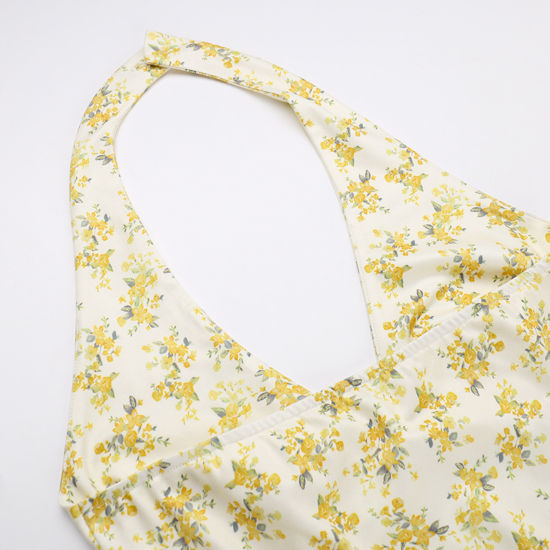 Deep V Plunge Floral A Line Dress Backless Halter Short