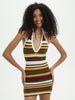 Deep V Plunge neck Collared Contrast Color Striped Crochet Sheath Dress Slim Halter Dress