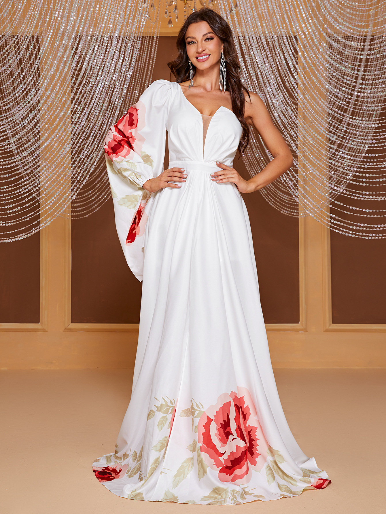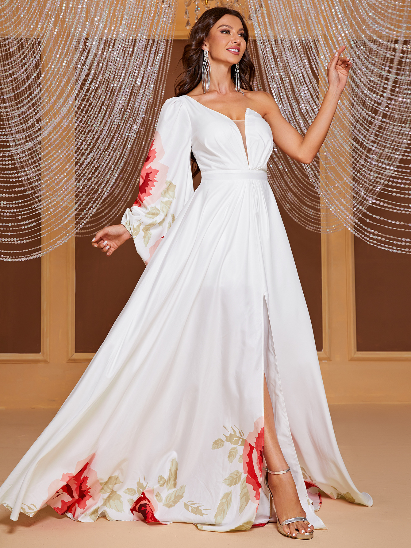 Design Maxi Dress Chiffon Single Sleeve Maxi Dress Split Print Dress